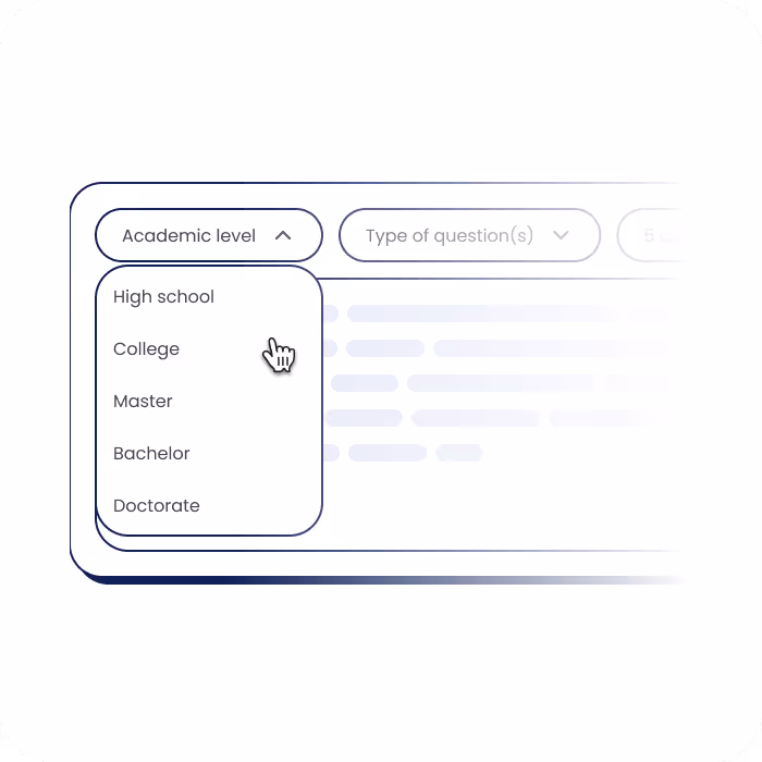 To adjust the complexity of your quiz, select your academic level: High School, College, Bachelor’s, Master’s, or Doctorate.